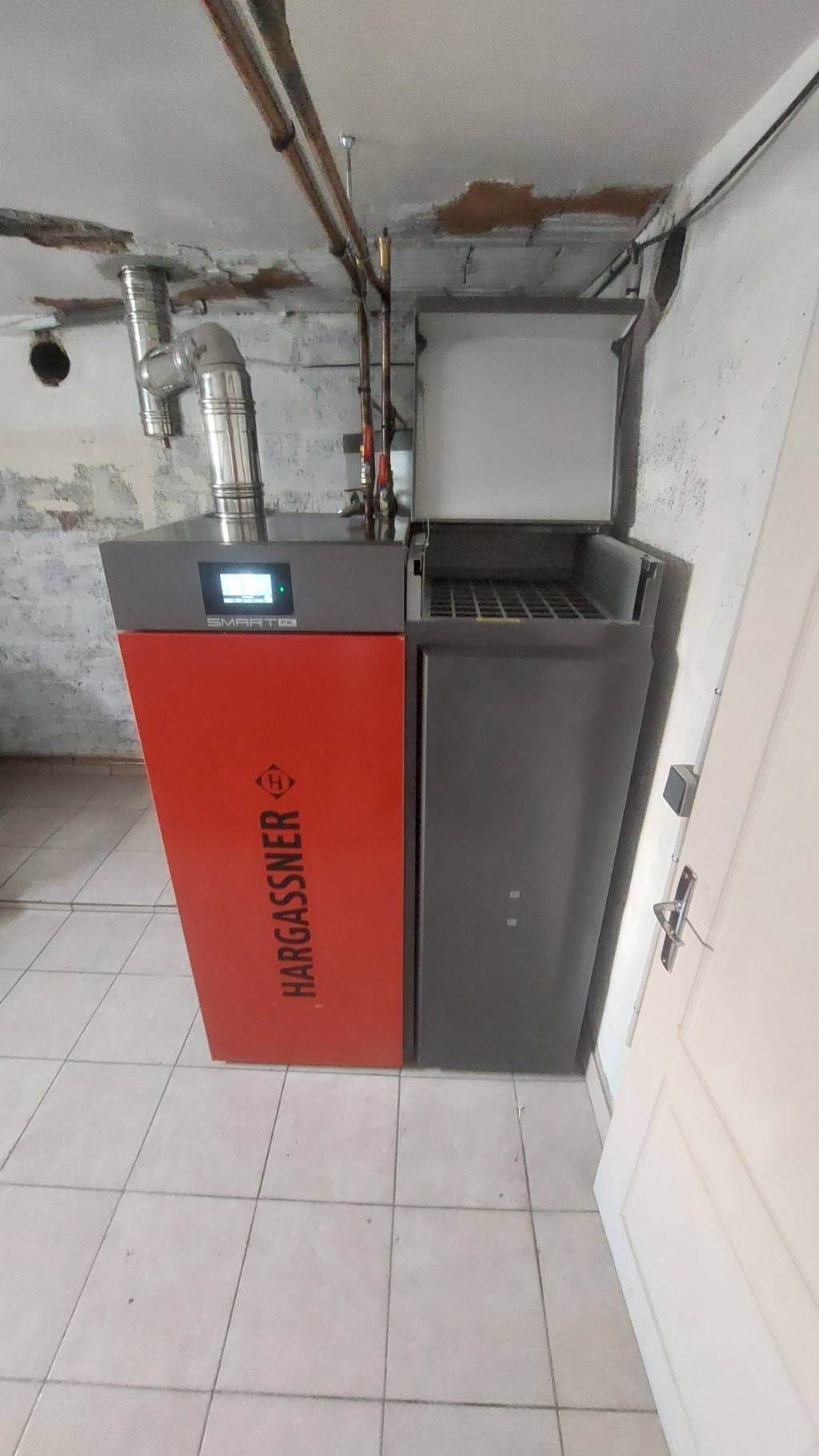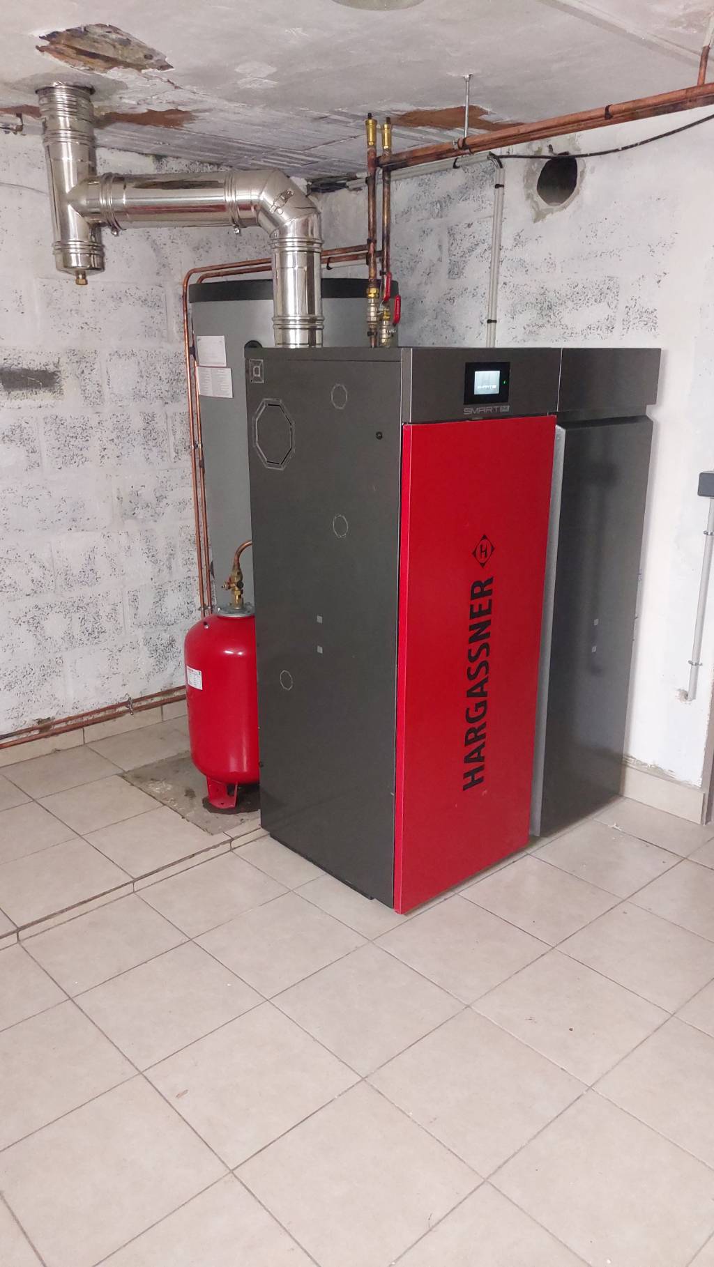 • Installation d’une chaudière à granulés de bois HARGASSNER Smart PK 17, avec création d’un réseau de chauffage central