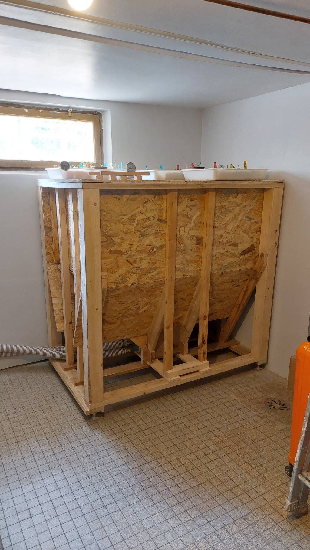 Le client a réalisé un silo de stockage à remplissage par sacs, une solution pratique, économique et parfaitement adaptée à la configuration du local.